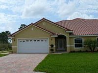Country Setting in a Golf Course Community! Located on a quiet street with a private backyard, this gorgeous 3 bedroom/2 bath plus office villa will amaze you! From the moment you arrive, you'll notice the quality features to include the pavered driveway, barrel tile roof & custom front door. With over 2000 lsf, the inside offers wonderful features as well; abundant neutral tile, neutral paint, volume cathedral ceilings & newer window treatment. The white kitchen comes with dimensional cabinets, tiled backsplash, solid surface countertops & a wrap-around breakfast bar & is completely open to the living rm/dining rm, plus there's an adjacent 14x18 family room; perfect for a game room/office & a finished tiled lanai. The large owners suite has dual closets, dual sinks & corner shower, plus there are (2) additional bedrooms & bath, for guests. And lets not forget the available villa next door, for your in-laws or extended family.