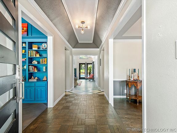 COMING SOON. NO SHOWINGS OR OFFERS UNTIL WEDNESDAY, JUNE 5, 2024.This well updated home sits on over 3/4 of an acre and is in the Jenks school district. This 4 bed, 3.5 bath includes new windows, a combination of new and refinished flooring, freshly painted, new light fixtures, new hardware plus dual heat and air, with one unit replaced within last two years. Beautiful entry opening to formal dining room and office with vaulted ceiling. Large family room with vaulted ceiling, wet bar and gas log fireplace. Family room opens to the bright and spacious eat in kitchen with hand-painted tile backsplash.