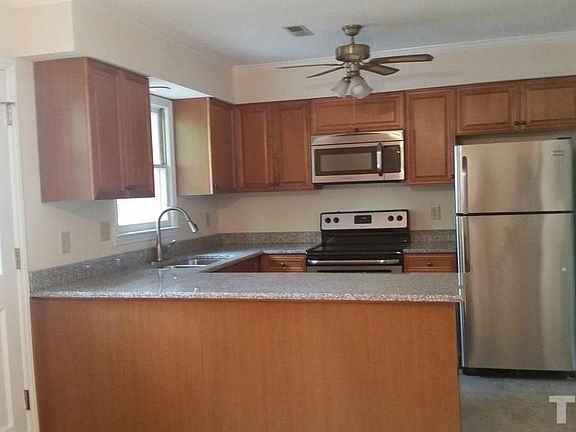 Meticulously updated townhouse @ Hamstead Crossing in NW Raleigh. No detail overlooked. Living room features wood flooring and brick fireplace. All new kitchen features granite & SS appliances & opens to dining room. All flooring brand new. Interior freshly painted. Large MBR features ensuite w/ large shower and two closets. All 3 baths extensively updated. Walk-up attic with lots of storage. Community pool. Private patio backs to woods. Great Glenwood location w/ shopping nearby. Welcome Home!