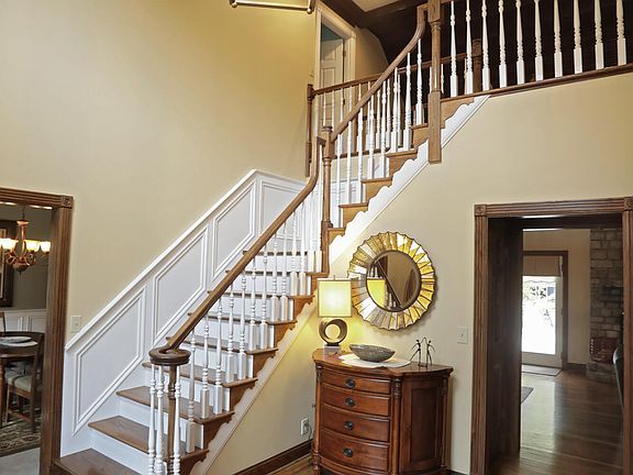 Situated on a one-acre treed lot in the desirable community of Indian Hills, this 2-story gem is not your typical traditional floor plan. An extensive paved driveway leads you to this residence, which is not viewable from the street, making it the envy of the neighborhood! Upon entering the home, an inviting 2-story foyer awaits with wooden staircase and gleaming hardwood flooring, which extends throughout much of the main level. A private study offers French door access and a view of the front lawn, while the formal dining room details extensive millwork, including wainscoting and dentil crown molding. The center great room features a vaulted ceiling with towering walkway overlooking this space from the second level. You'll love the cozy stone hearth fireplace with gas or woodburning capabilities. The heart of the home is a wonderful second gathering space, which is open to the kitchen. This vaulted family room addition offers access to the multi-level expansive decking and affords views of the private lawn from all three sides. The space is incredibly versatile for both dining and seating area, and is accentuated with two floor-to-ceiling built-ins for displaying your collectables or favorite library of reading material. Definitely a fabulous space to curl up with a book! The gourmet kitchen is well appointed with an abundance of white cabinetry, center island with breakfast bar, planning desk, separate beverage station with undercounter refrigerator, granite countertops and full appliance package, which includes stainless steel refrigerator (new in 2022). Alfresco dining will be a must on that expansive deck, which overlooks the treed lawn and extended driveway pad, ideal for additional guest parking or shooting hoops! The primary suite is tucked away just beyond the guest powder room and features private bathroom with double bowl vanity, garden jetted tub, separate shower, and generous walk-in closet with built-in design. Atop the staircase landing, a bedroom to the left is quite spacious, offering a lounge/den area, as well as two closets. Two additional bedrooms are ample size, and one features a large walk-in closet. The hallway bathroom offers double bowl extended vanity which is separate from the water closet area with tub/shower combo. The lower level affords more living space, consisting of cozy family room with brick hearth fireplace, hobby/craft room or office with built-ins, another possible bedroom (closet but no immediate egress other than walkout via the garage), full bathroom and spacious laundry room. The oversized garage affords plenty of storage opportunity or workbench if desired. Improvements in recent years include installation of the irrigation system in front lawn, roof (2015), one of the two furnace/AC systems (2011) and some of the wood flooring refinished on the main level. Call for your private viewing appointment today!!