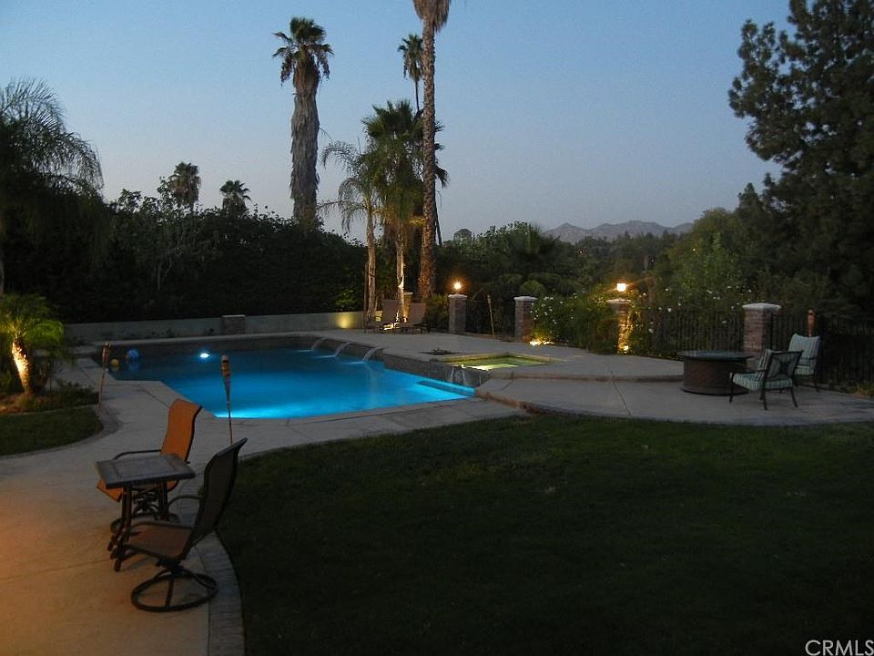 Immaculate Riverside home along the 17th Fairway of the Canyon Crest Country Club. 4 Bed, 2.5 Bath, 4340 sqft. Hardwood floors with Travertine in the Kitchen that has Granite Countertops and a large island. Stainless Steel Convection Double Oven, Custom Stainless Steel Refrigerator and 6 Burner Range with Grill. Family room has 5.1 Surround Sound speakers in the ceiling and 1 Bedroom is downstairs. Huge Master Bedroom with Balcony, Fireplace, Jacuzzi Tub with temperature control, big Shower with Dual water heads and large walk-in closet. Milgard, Dual Pane French Doors compliment the Plantation Shutters. A big Salt Water Pool/Spa, Custom built FireMagic BBQ with Outdoor Kitchen and a large backyard for Entertaining. RV Access and a dog run. MUST SEE to appreciate the detailed quality of the Upgrades and the Stunning Views.