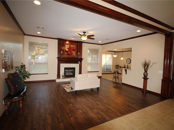 Gorgeous home in ideal neighborhood! Four true bedrooms -- three on one side of home with master on opposite side with three full bathrooms. Very light-filled and open with tall ceilings and large rooms. Living room has beautiful Bella flooring. Kitchen has granite counters, a breakfast bar, and loads of storage. Very large formal dining space, plus breakfast room. Living room and all bedrooms have ceilings fans. Bedrooms are roomy with large closets. A beautiful gas-log fireplace and incredible woodwork enhance this home. Master has a sitting/desk area, and master bath has a large jetted tub, a tiled walk-in shower, and double sinks. Master closet is very large and has a built-in dresser. The backyard has plenty of room for gardening or leisure activities, and has a great wooden storage building with lawnmower ramp. This home is a must-see!