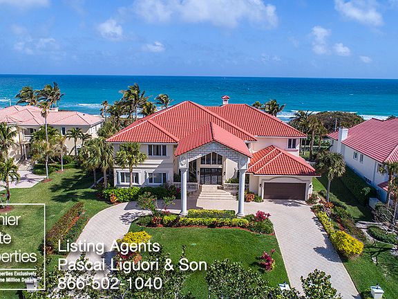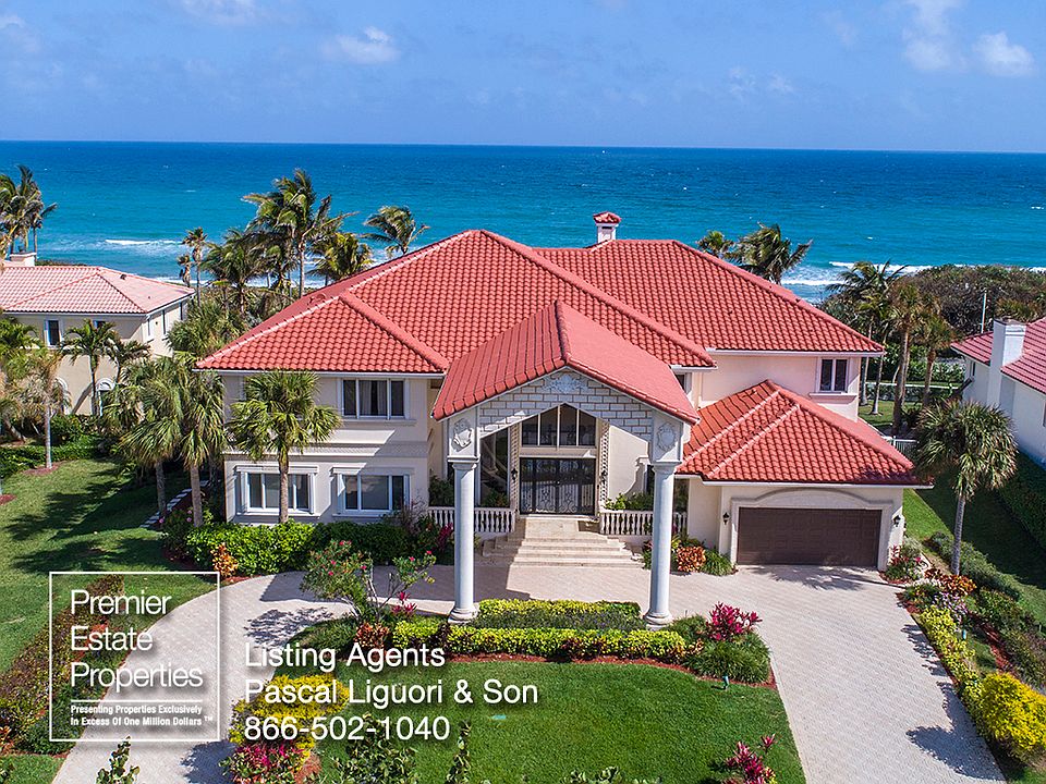 Inspiring a sense of Old Florida serenity, this Modern Mediterranean oceanfront estate sits high above the dunes, where glistening blue waters backdrop the lush outdoor oasis by the alluring lagoon-style pool. Stepping in from the grand porte cochere, the ocean view fills the impressive great room featuring a fireplace and wet bar. The enormous master wing creates its own haven of comfortable luxury. A private boardwalk leads to the beach. Dining room and foyer chandelier are excluded from the sale.The information herein is deemed reliable and subject to errors, omissions or changes without notice. The information has been derived from architectural plans or county records. Buyer should verify all measurements. See supplement