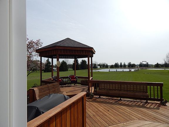 Home features 4 bedrooms, 3 full baths on 5 acres with finished basement! Over 3,000 square feet with finished attic area along with dining room, den, and wood burning fireplace in the large family room. Gorgeous deck looking out to 3/4 acre pond with five acres and pole barn. Run on Solar powered electrical system. This one is a 10!