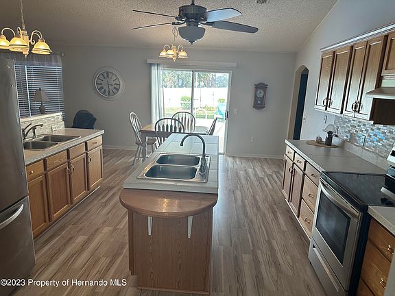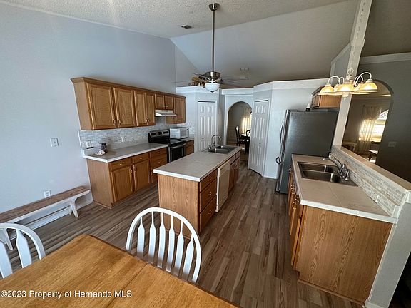 WELL MAINTAINED 2004 BUILT HOME INGREAT LOCATION! BRAND NEW ROOF SEPT/2023 HAS 2,047 SQ FT OF LIVING SPACE. HAS INGROUND VALUTED SCREEN ENCLOSED POOL PLUS VINYL FENCED BACK YARD FOR EXCELLENT PRIVACY WITH SMALL COY POND/WATERFALL AND STORAGE SHED. FAMILY ROOM, EAT IN KITCHEN, LIVING ROOM AND FORMAL DINING ROOM WITH CHAIR RAIL. SPLIT BEDROOMS FEATURE LARGE MASTER B/R WITH GARDEN TUB PLUS SHOWER AND 2 WALK IN CLOSETS. ALL APPLIANCES INCLUDED. INSIDE LAUNDRY ROOM. GARAGE HAS WATER SOFTNER AND WALL A/C UNIT. LOCATION IS 1 BLOCK FROM WESTSIDE ELEMENTARY SCHOOL AND 3 BLOCKS FROM US 19 PUBLICS PLAZA. VACANT EASY TO SHOW!