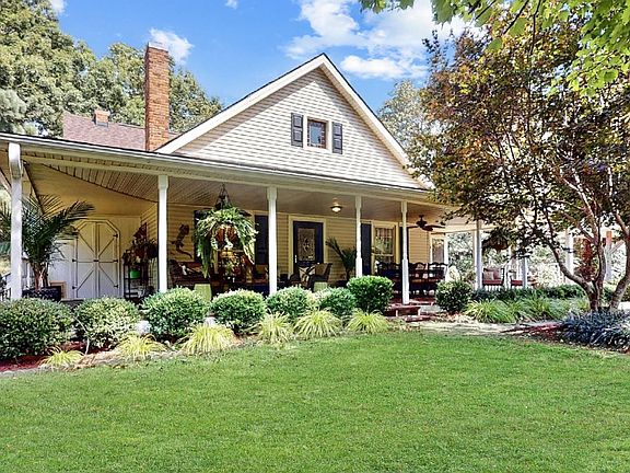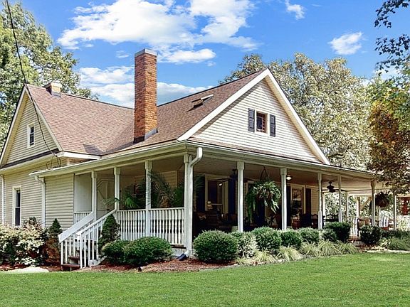 Full Moon Farm is 4.79 and features a 3 bedroom 2 bath gorgeous farm house built in 1920. Enjoy a sip of tea on the wrap around front porch. The floor to ceiling stone fireplace in the living room is breathtaking with custom book shelves on each side. A staircase leads upstairs to the cozy loft area and walk in storage areas. The cook's kitchen (renovated in 2022) boast a walk in pantry, SS appliances, and an Eat-In area overlooking the outdoor flower garden and patio. Large bedrooms with a spa-like owner's bath (updated in 2017). Relaxing sunroom displays an electric fireplace and exits off to a back deck that is great for entertaining (redone in 2018). The double carport is oversized and detached from the house. Beautiful landscaping. Serene and very private. Horses are allowed. Plumbing replaced and front porch redone in 2015. HVAC replaced in 2016 and duct system replaced in 2021. New roof in 2018. New hot water heater in 2021 with added hot water system. Electrical system maintained and 2 new service panels.