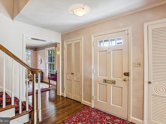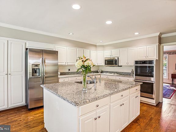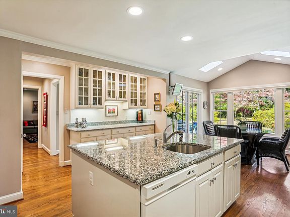 Expansive and beautifully appointed Dutch Colonial home in the highly coveted Bradley Hills neighborhood of Bethesda featuring 4-bedrooms, 2 full bathrooms, 2 powder rooms, and just steps to Downtown Bethesda. This rare, extraordinary property is ideally located on a 0.31-acre lot on a quiet tree-lined street with access to a walkway providing easy access to all that the heart of Bethesda has to offer. This magnificent, expanded home includes exquisite finishes, handsome moldings, two curved staircases, custom millwork, gleaming wood floors, window treatments, and other superb architectural details throughout. The main level features a gracious entry foyer with two coat closets, an inviting living room with a fireplace and display shelving, a cozy den / family room with a large picture window and custom built-in shelving / desk, an outstanding renovated chef's kitchen and breakfast room, a formal dining room with crown and chair rail molding, and the perfect home office with a built-in desk and wonderful natural lighting. The expanded gourmet kitchen has handsome cabinetry and granite counters with tile backsplash, a huge center island, two GE stainless steel wall ovens, voluminous prep space, a stainless-steel side by side refrigerator with an ice and water dispenser, a buffet with glass front cabinetry, a walk-in pantry, and a huge sundrenched breakfast room with a gabled ceiling, skylights, and access to the rear Flagstone patio. The main level is complete with a powder room and access to the garage that includes easily accessible storage space above the garage. On the second level, there are four sizeable bedrooms with built-in window benches with storage, and two full bathrooms, including a spacious primary bedroom suite with a private bathroom. Downstairs is a large "L" shaped recreation / game room with wall-to-wall carpeting, a decorative fireplace, and a decorative ledge. The lower level includes a half bathroom, a workbench area, and a huge laundry / storage room. AC unit and hot water heater replaced in 2017. With its many noteworthy amenities, meticulous attention to detail, and outstanding flow, this four-bedroom, three-level residence is truly exceptional. Outside is a picturesque yard with mature landscaping, a tranquil flagstone patio with a built-in gas line for the grill, a wonderful large backyard with an Azalea garden and lots of space to run about. Ideally located near vibrant downtown Bethesda in close proximity to the library, shopping, restaurants and coffee shops, Metro, the Crescent Trail, and so much more - this is the one you've been waiting for.
