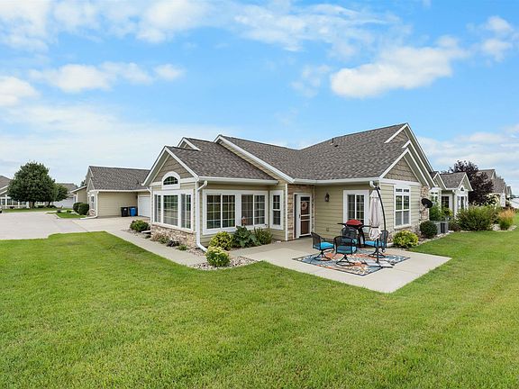 Ranch Condominium with two bedrooms plus two baths. Upgrades include under cabinet lighting, granite countertops, tile backsplash, & epoxy floor in the garage. Desirable location. Spacious open floor plan boasts 9' vaulted ceilings in the living room & kitchen. Beautiful gas fireplace with thermostat. Vaulted Veranda/Sunroom & spacious front patio overlooking greenway. The kitchen/Dining features custom cabinets, a pantry & breakfast bar. The master bedroom has a trayed ceiling, tiled walk-in shower & walk-in closet. Main floor laundry & large storage room with shelving. 2 car garage is finished with pull-down ladder for attic storage. Home Owners Association includes Club House with exercise room, outdoor pool, lawn care, snow removal, exterior building maintenance, insurance, garbage & road maintenance.