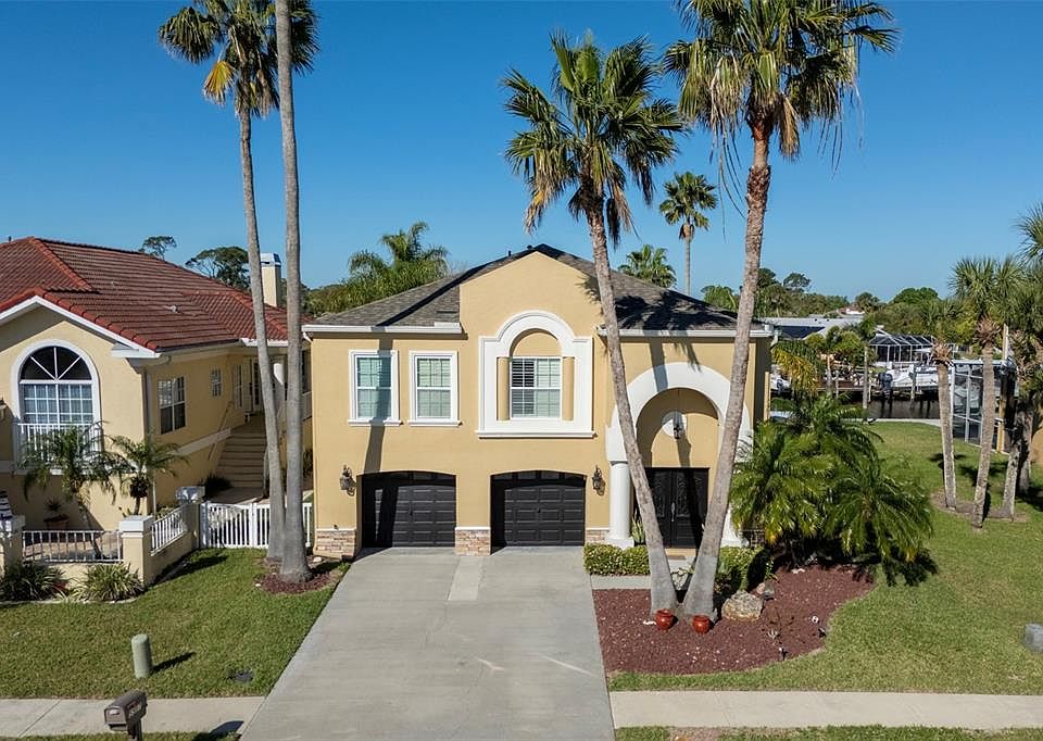 Welcome to your very own slice of paradise with direct Gulf access! This stunning waterfront home offers the ultimate Florida lifestyle — in just 15 minutes by boat, you could be cruising the Gulf, fishing, island hopping, or simply soaking up the sun. Step inside to a grand foyer with a private elevator leading to an inviting open floor plan. The heart of the home features a chef's kitchen with rich hardwood cabinetry, sleek black granite countertops, premium appliances, and a striking natural stone backsplash. Upstairs, you’ll find 2 bedrooms plus a versatile den, and 2 full baths. The expansive master suite is a true retreat with warm hardwood floors, recessed lighting, and elegant plantation shutters. The spa-like master bath boasts a tiled walk-in shower, granite-topped hardwood vanity, and fine finishes throughout. The lower level has been thoughtfully transformed — a once 4-car garage now a 2-car garage also includes an incredible guest or in-law suite with a private entrance, 1 bedroom, 1 bath, and a partially updated kitchen. Perfect for visitors or multi-generational living! This home is equipped with a state-of-the-art whole-house water treatment system powered by solar energy, ensuring clean, high-quality water throughout the home while keeping utility costs low. Step outside and enjoy Florida’s finest — cool off in your sparkling inground pool or stroll to your private dock and boat lift, ready for your next adventure on the water. This one-of-a-kind home is priced to move and offers unbeatable value, Don’t miss your chance to live the Florida dream — this gem won’t last long!