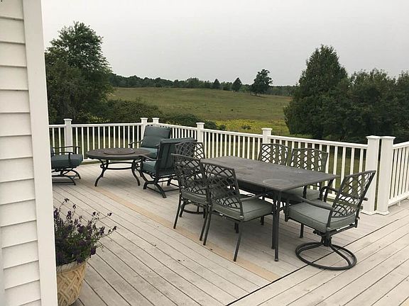 This home has been well maintained. The roof is 7 years old. The outdoor wood stove is 5 years old. The home has a tankless on demand water heater. The water boiler system is zoned and the garage is plumbed for heat. The basement boasts a pool table, wired for surround sound, a bar and well built/designed storage rooms. If you are interested in viewing this home: select call property owner listed below the premier agents pictures.