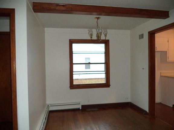 Great starter home, retirement or rental property. Third bedroom could also be used as a family room. Hardwood flooring in Living, dining and both bedrooms. Located very close to town and shopping. City water and city sewer. Good size garage. Nat. gas hot water heat. Clean and ready to move into.