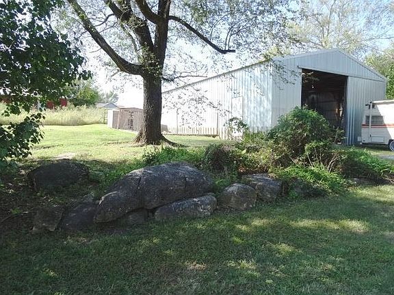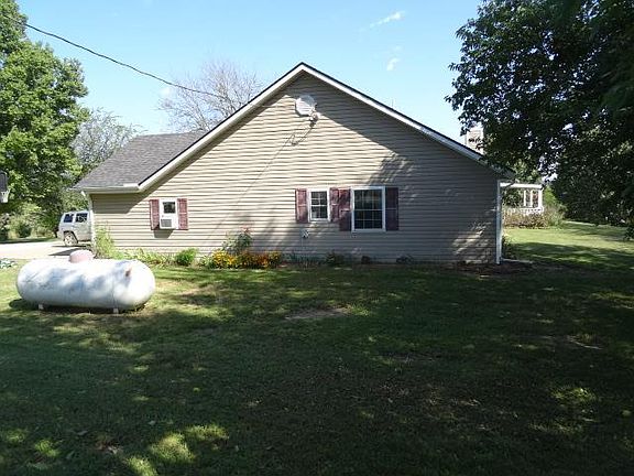 3 BR, 2 BA sets back off road/ a view in 3 directions from big windows. 7x9 Foyer/plenty of rm. to double as a place to take off shoes & coat. All 3 BR's have ceiling fans. Kitchen comes equipped/appliances, pantry, coffee dessert bar, add a butcher block or island there is plenty of room. Large openings into DR and LR from kitchen. LR has a wood burning fireplace flanked by 2 windows and a door outside to a 18x26 covered patio. Watch the deer-grill-or watch the kids in the 4'deep above ground pool/ 2 yr. old liner Hall BA, Master BA, Great landscaping & flowers, garden spots. Roof new in 2017, HVAC in 2015, Garage is a man cave/propane wall furnace, built-ins, TV hook-up. 30x50 Metal Bld./ 12' high doors, electric, room for the camper. 3/4 of the acres are woods, perimeter fenced, concrete septic-lateral line