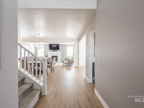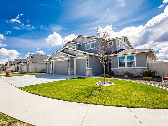 Turnkey home with upgrades you won’t find in new construction! Open floorplan flows from the entry to the great room with gas fireplace, into the kitchen and formal dining. The kitchen features an oversized island with breakfast bar, ample cabinet space, and access to a patio with extended concrete, garden beds w/ full irrigation, upgraded landscaping, curbing, dog run, and shed. Flex room off the dining can serve as an office, second living, or dining space. Main-level bedroom and full bath offer great guest or multi-gen options. Upstairs you'll find a spacious primary suite with dual sinks and a large tiled walk-in shower, plus two additional bedrooms and a loft. Fully fenced corner lot and rare 4-car garage make this one a standout! BTVIA