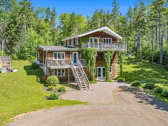 Escape to your own private retreat on over 8 acres of land, nestled just moments away from breathtaking south shore beaches. This exceptional property presents a rare opportunity with 2 four-season homes allowing for endless possibilities. The larger house emanates a charming English cottage feel, enveloping you in its enchanting ambiance. On the main level you will discover three to four bedrooms and two full bathrooms, providing space for relaxation and rejuvenation. On the second level is an open-concept kitchen, dining and living room. This thoughtfully designed layout promotes seamless flow and interaction making it ideal for entertaining guests or enjoying quality time with loved ones. Step onto the decks, located at the front and back of the house, and relish in the tranquility of the surroundings. A walk-out unfinished basement with plumbing for a third bathroom provides a valuable opportunity to create an additional suite or customize the space to your desires. Whether you envision a guest suite, a home office or a rec area, this blank canvas awaits your touch. A recent energy audit and the installation of four heat pumps mean all year comfort and below-average energy consumption. Adjacent to the main house, an adorable two-bedroom oasis awaits. As a successful Airbnb, this home serves as a perfect haven for visiting family or a valuable income-generating asset, as a short or long-term rental to help offset your mortgage expenses. With a recently installed heat pump, this home is easy to cool in the summer and heat in the winter. These properties are a nature lover's paradise, with cleared areas surrounding both homes, a pond, and densely wooded acreage to ensure privacy and serenity. For those interested in growing your own food, there is a greenhouse, four-season chicken coop and storage shed for all your tools. Immerse yourself in the natural landscape as you create a sanctuary away from the hustle and bustle of everyday life and embrace coastal beauty.