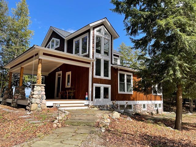 New build custom home with over 400' of pristine Lake Michigan frontage. Expansive lakeside, enclosed deck (porch with wood burning stove. Home offers 3-4 bedrooms, 3 baths, wood-burning fireplace, hickory wood floors, custom cabinetry and bright, airy floorplan with sun light and lake views everywhere. High-speed internet, multiple biking and walking trails, brook-trout stream nearby, endless Petoskey-stone finding, lighthouse and island views, active eagles and hummingbirds. Home is surrounded by towering pines and guarantees privacy. Leggs Inn and Wycamp Lake are just a stone's throw away.