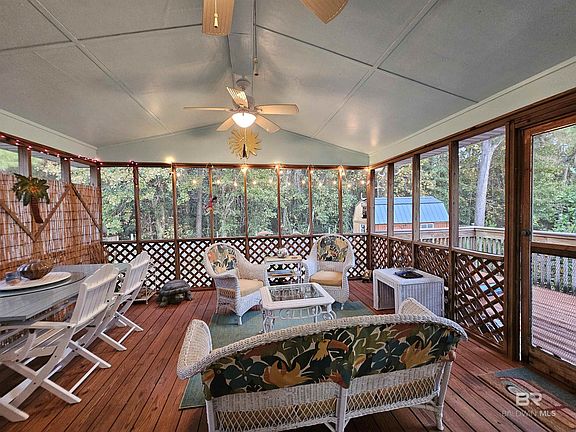 PRIVACY & TRANQUILITY in GULF SHORES only min from BEACH! Beautiful SUNROOM with windows views overlooking private, FENCED YARD backing up to woods. Enjoy OPEN & Airy, vaulted ceiling, skylight, NEW WALK-IN Glassed-in SHOWER, new dishwasher. Updated paint and decor'. LEMON TREE and other beautiful nature to enjoy. Quiet subdivision, this property is very well maintained, super clean and ready to move in. SOLD FURNISHINGS & DECORATED FOR THE BEACH. Located off County Rd. 6 and convenient to beaches and shopping. Newer air conditioning unit. Awesome screened in covered back deck with an additional uncovered deck for the grill. Fenced in backyard, may be able to store boat, RV or add a POOL. No HOA per Seller. Survey, Sellers disclosure & Sellers existing insurance will be added to MLS docs or photos. Buyers to research & verify any and all info.