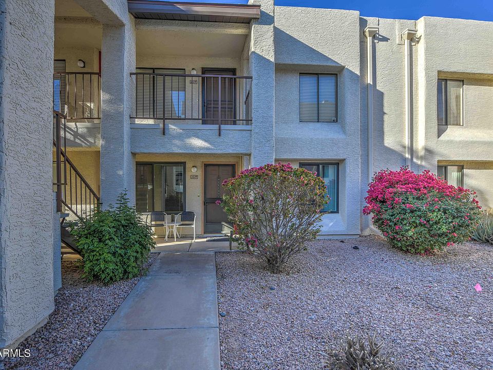 This lovely ground floor Condo unit is priced to sell! Features include but are not limited to two full bedroom, huge master bedroom, 2 bathrooms and is located just steps away from parking and both of the community pools. Located in the active adult community of Apache Wells. Being sold fully FURNISHED. This will not last long, bring your clients today!