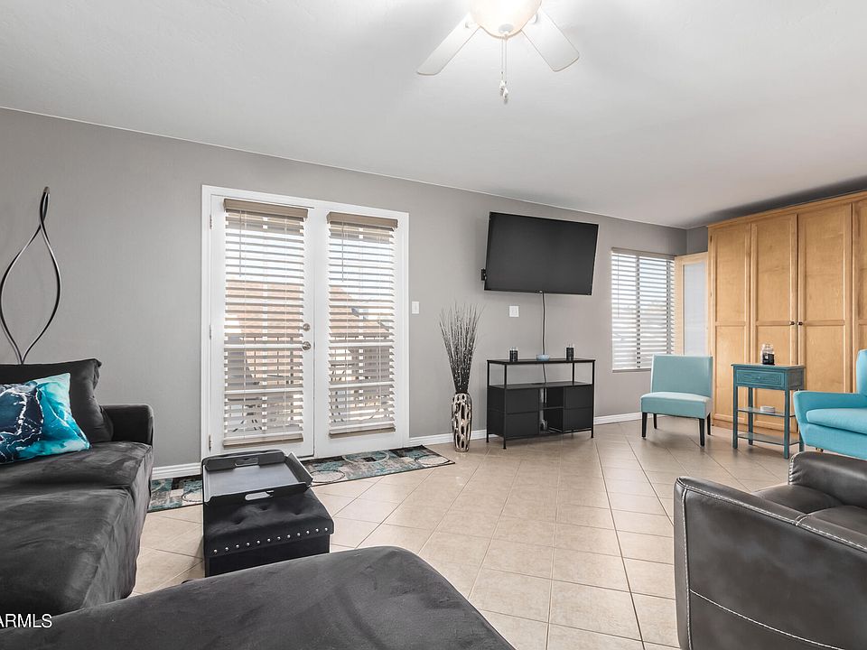 This charming condo is located near the pool in the coveted 55+ Golf Community, Village at Apache Wells and it INCLUDES all the modern furniture with the purchase. Nicely sized primary bedroom with updated ensuite bath. A versatile Murphy Bed off great room is ideal for overnight guests (could easily be made into 2nd bedroom). The beautifully updated kitchen is equipped with quartz like counters and SS appliances. The cozy dining area opens to the spacious great room. AC unit is 2 years old. New carpet, lighting and ceiling fans throughout. Village at Apache Wells has tons of amenities to include 2 pools, 2 spas, clubhouse, fitness room, full kitchen, library, and dining area. This is the perfect spot for a second home or retirement retreat. Don't miss out—come and see it now!