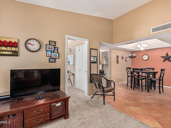 Welcome to your dream Arizona lifestyle in the highly sought after active adult community of Apache Wells! This stunning 2 bedroom, 2 bathroom condo boasts mountain views from its private patio. As you step inside, you'll be greeted with a spacious and inviting family room, perfect for entertaining guests or relaxing after a long day of activities in the association. The kitchen is a chef's delight with beautiful granite countertops, plenty of cabinet space and an eat-in dining area. One of the most desirable features of this home is that it is located on the top floor, providing peace and quiet without any noisy neighbors above. You'll love the vaulted ceilings and abundance of natural light that fills every corner of this charming abode. The master bedroom offers ultimate comfort with with a walk-in closet and en-suite bathroom with dual sinks. And let's not forget about the convenience of an inside laundry room! Step outside onto your own private patio where you can sip your morning coffee while taking in the views or use the patio closet as additional storage space. Don't miss out on this opportunity to live in one of the most coveted communities in Apache Wells.. Come see it for yourself today and experience the lifestyle!