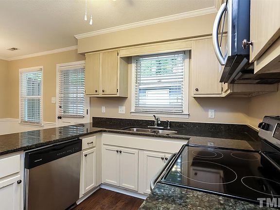 This Raleigh two-story townhouse offers a gas fireplace, granite kitchen counter tops, stainless steel kitchen appliances, and an uncovered patio.