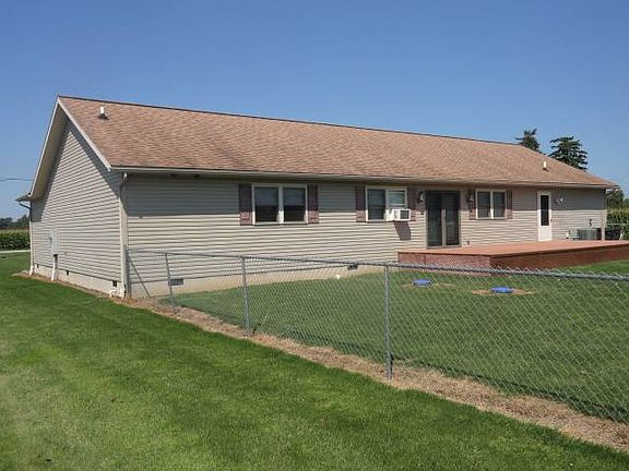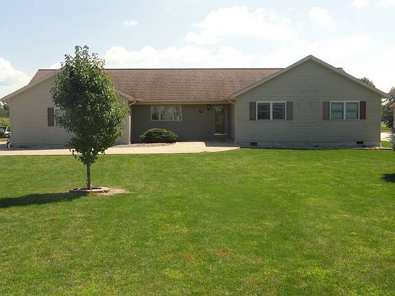 Beautiful country home. Large bedrooms with large closets, open floor plan with an island in kitchen area with bar stools, solid oak flooring throughout, French doors to the large back yard, 2 full baths with tub and shower, large laundry room with extra storage space, over-sized 2-car garage with additional space for tools and mower. Cement driveway with turn-around. This home is in move in condition.