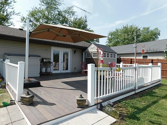 PRICE REDUCED! This home could be your own little Piece of Country Bliss. This spacious ranch has had the former garage converted to a massive family room complete with a center pellet stove, bordered on both sides by elongated windows, as it's focal point, to cozy up to on those upcoming chilly evenings. Living room also offers a pellet stove for added warmth and energy efficiency. Huge eat in kitchen with an illuminating beamed skylight, ceramic flooring and walk in pantry. The master bedroom has a convenient adjoining 1/2 bath. French doors lead to the awesome 20x24 composite deck overlooking the wonderful back yard with privacy fence offering extreme solitude. Single and double gated entries so you can get any mower or vehicle to the rear with ease. A multitude of various storage sheds to accommodate your storage and out of season needs. You will be delighted by wishing well coy pond and raised vegetable/flower gardens (2 smaller ones do not convey). Huge double driveway and side area offers massive amount of parking for cars, camper or boat. This property definitely has an ''In Demand'' portfolio and won't last.