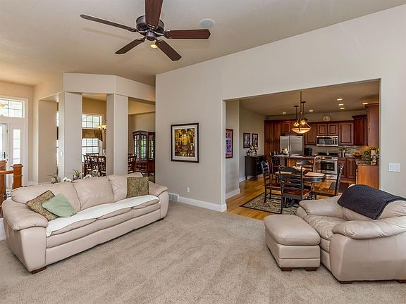 This stunning CRDR built home has a neutral décor and has been meticulously maintained. There are double doors off the foyer into a main floor office/den or bedroom. The entry also features maple flooring that extends into the formal dining, kitchen and eating area. Sellers have added beautiful glass tile backsplash as well as under cabinet lighting that enhances the cherry cabinetry and granite countertops in the kitchen. The master has been improved by removal of the pre-fab shower and professional installation of a tiled shower to complete a lovely master suite. Lower Level features 2 bedrooms, full bath and spacious family/entertaining areas which owners have completed with bar and built ins. This home also has central vac, security (has not been activated, wired for sound system, cozy front porch, deck and fenced yard. Don't miss your opportunity to see this fantastic home