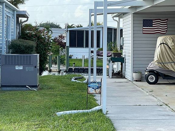 Old Bridge Village is a gated, resident owned, age restricted riverfront community. This Super Cute 1980 1392 Sq Ft 2/2 home has an enclosed front Florida Room heated and cooled and a screened in side Lanai. New flooring in kitchen and guest bath, updated Kitchen countertops, refrigerator with ice maker. Reverse osmosis system under kitchen sink and whole house water filtration system and new plumbing and fixtures in kitchen and baths. Extra wide driveway fits 2 care side by side. OBV offers an active Florida Lifestyle SPECTACULAR Gulf Access and plenty of outdoor spaces and activities. Direct access to the Gulf of Mexico via our boat launch or the Lighthouse Marina. Enjoy a quiet moment reading or attend engaging entertainment at the club house. Engage friends and neighbors on the tennis or pickle ball courts, take a refreshing dip in the pool or take an uplifting water aerobic class. Go fly a kite, have a picnic, watch a sunset or fireworks from Palm Point our 9 acre waterfront park. If you are looking for an affordable active Florida Lifestyle come take a look. You will not be disappoint