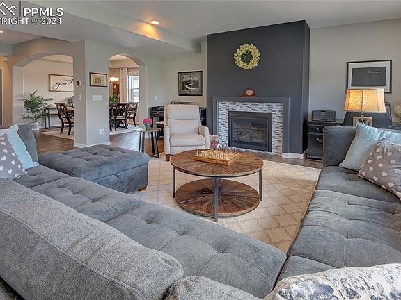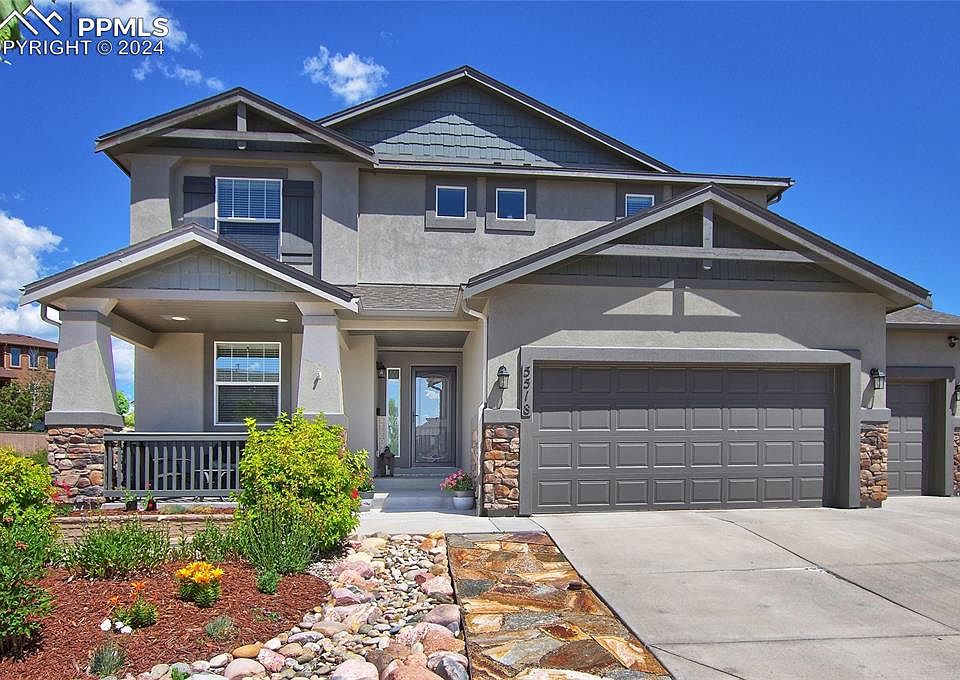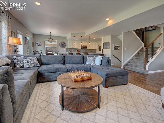 A beautiful, better than new 4 bedroom home w/ a 3 car garage & one of the largest yards in the neighborhood. Located in Wolf Ranch in a delightful cul de sac, this immaculate home has a neutral color palette & attractive stucco & stone exterior w/ a large front porch. The entryway leads to a private office, powder room & a formal dining room. The great room w/ gas fireplace & warm wood mantle is the heart of the home. Large windows provide light & views of the backyard. The eat in breakfast nook is large enough to seat everyone & the island in the kitchen seats people comfortably. The kitchen is a cook's dream with stainless steel appliances including a stainless steel farm sink, gas stove & dishwasher. Wide plank wood floors are a rich color. Leading out to the garage is an adorable mudroom & large walk in pantry. Upstairs there is another family room or an "anything you want it to be" room & 3 additional large bedrooms & a good-sized laundry room. The primary bedroom is separated from the others. It is large with tray ceilings, lots of windows and an amazing 5 piece bath attached. The bath includes a separate toilet room, an oval soaking bathtub, double sinks & a glass enclosed shower. The walk in closet is large & well organized. With over 4000 square feet of living space, there is so much room for fun including a massive basement ready for your creative touches! It has 9 ft ceilings and is plumbed for a wet bar & a full bath plus 2 more bedrooms & a massive 22 x 18 ft recreation room. Other features include a 4 ft extension in the garage and a dedicated GFCI outlet for an extra fridge or freezer. Wolf Ranch has a community pool, dog park plus a beautiful gathering space for summer concerts & farmers markets. The spacious man-made lake is filled with fish for your enjoyment & trails are everywhere. Located in award-winning School District 20 & near parks, restaurants & shopping, the Sellers hope this will be your next home.
