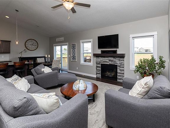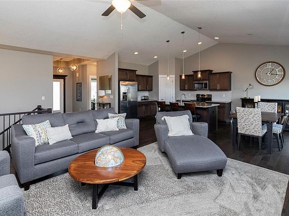GORGEOUS Happe Homes "barely lived in resale" in Urbandale w/ Waukee Schools. Entering you're greeted by a welcoming entryway that gives views to the open concept main level. A spacious study or bedroom is off the the hallway, along w/ a full hall bath. Tall, vaulted ceilings are throughout the kitchen and living room. Luxurious, engineered dark hardwood are through as well. Kitchen features ample, high quality espresso cabinetry, pantry, SS appliances, quartz coutertops, island w/ breakfast bar seating & a dining area w/ access to large back deck. Living room is equipped w/ a fireplace & large windows. Master-bedroom w/ master-bathroom double vanity & walk in closet attached to the laundry & mudroom. The lower level is finished w/ large living space w/ walk out to large patio, as well as a wet bar. 2 more bedrooms can be found in the LL, with another full bath. Ample storage space along with a 3 car garage and this property backs to an open field. Need we say more! Come see today!