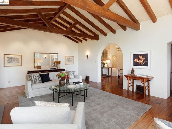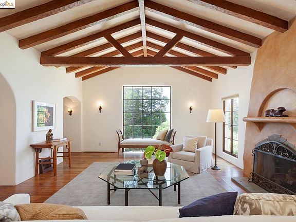 Best value! Romance and charm abound in this magical Mediterranean in Montclair hills. Beautiful architectural details. Elegant LR w/hand hewn beams on vaulted ceilings, FDR w/French doors. Fab remodeled chef's kitchen w/eating area. Extra "plus" rooms for guests or home office. Sparkling bay views. Xlarge lot with level yard and fruit trees. Abundant storage. Garage with inside access. Only minutes to freeway access, Montclair village, and nearby regional parks. A truly special getaway.