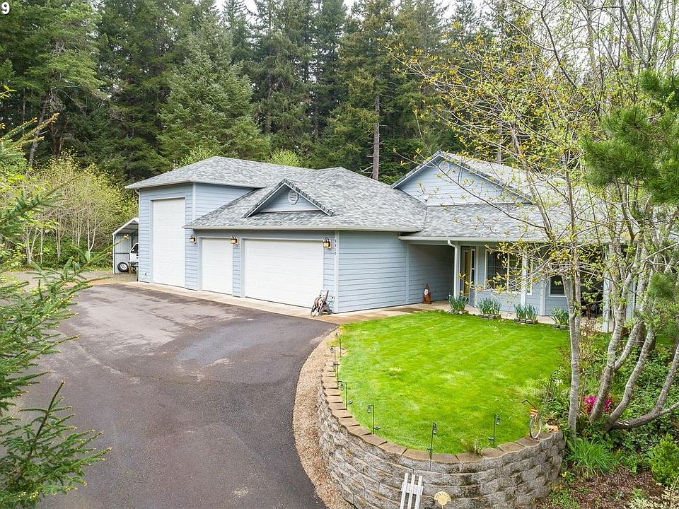Custom home located in the upscale Dunes City community. Enjoy nature and your privacy while you relax inside or out. Great room style living/dining including vaulted ceilings and large kitchen with granite counter tops and stainless appliances. Oversized 3 car garage plus RV Garage with storage loft. RV parking. Perfect location for quick access to Florence, the dunes and even the ocean.
