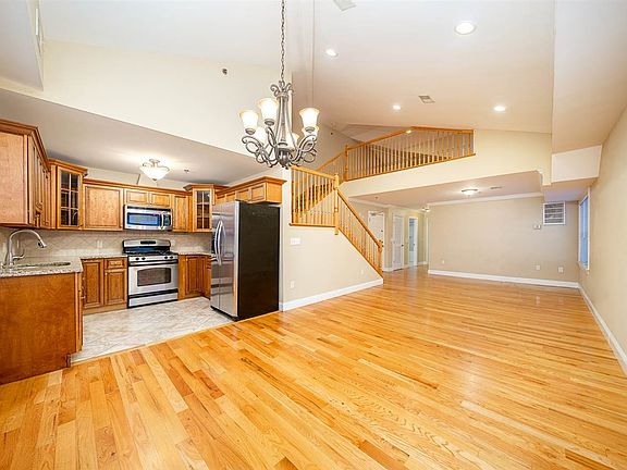 THE LARGEST FLOORPLAN IN THE BUILDING! Welcome home to this beautiful condo! This home offers over 1,929 SF of living space and can be laid out many different ways (1 Bedroom, Den, & Loft or 2 Bedrooms & Loft, or even 3 separate sleeping areas!). On the first floor there is a spacious bedroom and a den that is approximately 10 x 10 (currently used a huge walk-in closet/storage space). On the second floor, there is a huge loft space that can be a second bedroom, home office, exercise area - the possibilities are endless! Large, updated kitchen features stainless steel appliances, dark wood cabinets, and ample counter space. The kitchen opens up to the spacious living/dining combo room which features high ceilings and tons of natural light. This home features hardwood floors throughout and an in-unit washer/dryer combo. Enjoy the perks of onsite garage parking. Located in the heart of West New York, close to major transportation including NJ Transit into PABT and the Light Rail with connections to the PATH. Conveniently located near shopping, parks and grocery stores.