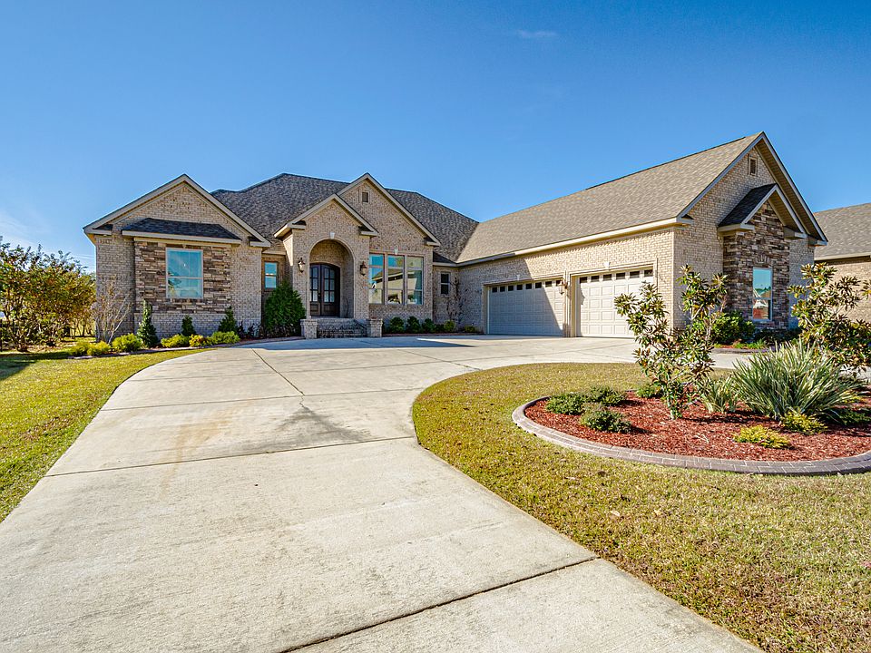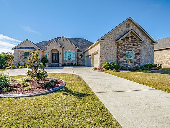 Absolutely stunning home in Saraland! This gorgeous 4 bedroom 2.5 bath with 3,292 sq ft is located in the beautiful Twin Lakes Estates. Home sits on the lake with a grand U-shaped driveway. As you enter the home you can see the beautiful open floor plan with large open windows giving you a perfect view of the lake. You will notice the exquisite crown molding and additional custom trim work throughout the home! Home features 10' ceilings throughout the home and step-up ceilings in the dining area and master suite. Kitchen has beautiful custom built cabinets with plenty of storage. Wolf appliances featuring a convection steam oven, Sub-Zero refrigerator, and Bosch dishwasher. Top of the line appliances! Just off the kitchen is the 8x10 pantry with plenty of shelves and storage. With a split floor plan the master suit and master bath are just off the living area. Master bath has large custom built cabinets with a large garden tub and walk-in shower. Master bath has a 215 sq ft walk in closet is to die for! On the other side of the split floor plan are 2 additional large bedrooms and full bathroom. These 2 bedrooms both have large closets with storage and shelving! The 4th bedroom can be used as a study, additional living area/TV room, or playroom/game room for the kids! Just of the breakfast area is the patio, giving you beautiful views of the lake. Patio features hardwood ceilings and is wired for lights and gas for a grill! This home is built to entertain! Constructed with foam insulation throughout the home and 2 tank less water heaters on eon each side of the home. Utility costs are exceptionally low due to the construction of the home. The 4 car garage is over 1200 sq ft with 1 18' door and 1 12' door with both doors having a wind ranting of 165 mph. Also features 27ft depth can easily fit 4 vehicles, oversize vehicles, boats etc. Plus there is additional storage up stairs in the garage. Could easily become a bonus room, game room or man cave. The pristine landscaping also features a full yard sprinkler system. This home has so much to offer you do not want to miss it! Call us today to schedule your showing! All measurements are approximate and not guaranteed!