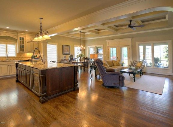Custom builder's personal home conveniently located in Wolf Pen Springs in Eastern Jefferson County. Attention to detail is evident throughout! Welcome your guests through the 8' arched entry door. Entertain family and friends in the spacious Grand Room which opens to the dining area and well-appointed kitchen. The distinctive interior features a welcoming foyer, extensive trim, coffer beam ceiling, hardwood floors, kitchen cabinets to ceiling, large island, upgraded appliances, granite countertops, and exceptional fixtures. The well-appointed master suite boasts a hip-tray vaulted ceiling, a master bath with tub, large tile shower with bench and dual faucets, his/her vanities with make-up area, and abundant storage in the walk-in closet! Your laundry is conveniently located near the master closet to save trips back and forth. The first floor flex room can be used as a guest suite, office, nursery, or craft room. The mud room includes cubbies, lockers, a closet, and a drop zone desk area for mail, phone chargers, laptops, etc. Enjoy the outdoors on your large covered/screened lanai with outdoor stone fireplace and wonderful views of your large back yard. A loft/desk area is efficiently located at the top of the stairs on the second floor, along with three additional bedrooms, a Jack/Jill bath, and a fourth full bath roughed in for future use in the third bedroom. The lower level is ready for you to finish with 9 foot +/- ceilings, an open entertainment/bar area, an additional bedroom with egress window, full bath rough in, and plenty of extra space for storage. Wide doorways for easier accessibility, 7' tall interior doors on first floor, high efficiency gas furnace, Energy Star windows, fresh air ventilation, humidifier, 80 gallon high efficiency water heater, wired for sound and security systems, irrigation . . . too much to mention here! Wolf Pen Springs is conveniently located near the Paddock Shopping area, restaurants, interstates, within walking distance of Norton Commons, and only 12 miles to downtown Louisville.