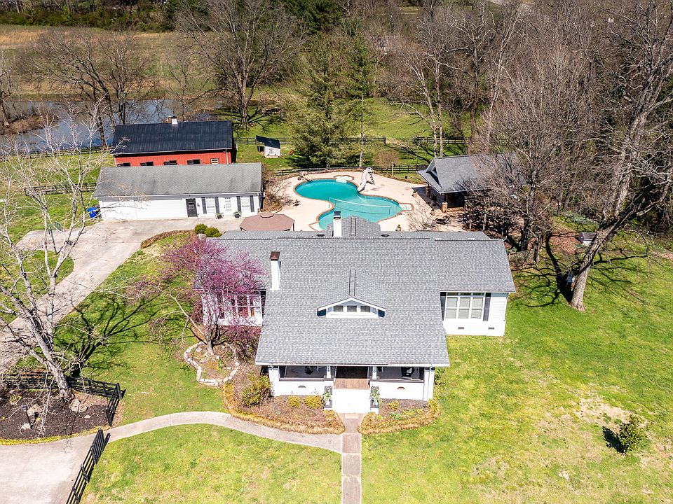 Welcome home to this fabulous Chic Farmhouse perfectly placed in the middle of 5 serene acres! Enjoy rustic hardwoods, large windows, a gourmet kitchen which boasts a large wood burning brick fireplace, KitchenAid stainless appliances, open ceiling designs, elegant wood cabinetry, 10 ft tall PLUS ceilings and more! The property includes a detached 3 car garage, a guest suite equipped with a full bathroom and kitchenette, a large horse stall barn with new outdoor LED lights, Lagoon style 45,000 gallon pool, new well pump, pool grill/wet bar equipped with everything for entertaining- surround sound and tap kegerator. Roast marshmallows over the gas firepit under the open pavilion, fish or paddle boat in the stocked pond. The property boasts white oaks, black walnut, pecan trees, grapevi