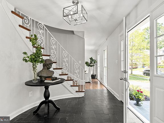 This beautiful, gracious 3800+ finished square foot home has been recently refreshed with new landscaping, fresh paint throughout, an updated primary bathroom, freshly stained floors, new basement carpeting, a new front door and many other upgrades. As you enter the home, a generous-sized foyer with slate grey floor and a beautiful round staircase greet you. From the entry, you have a view straight out to the back garden. On the right, a large formal dining room is the perfect setting for hosting dinner parties. On the left, a large living room with recessed lights connects to a huge family room, creating both formal and informal living spaces. The family room and kitchen are open to create one large space, encompassing the entire back of the home. A small sunroom off the family room provides an additional room for reading or a home office. Beautiful views to the tree-lined backyard invite you to relax and enjoy nature. There is plenty of outdoor space for grilling, playing with your pet or relaxing with friends and family; a carport and back covered patio allow for additional outdoor seating. Downstairs, a newly carpeted recreation room is perfect for play/hobby space and is very large. As there is a full bathroom on lower level and a separate outside door, space could also be used as lower level 5th bedroom/in-law suite. Upstairs, enjoy your primary bedroom with ensuite bath and an extra room for an office and/or dressing room. 3 additional bedrooms and another full bath complete the 2nd floor. In addition to being a great home, the home is located only 1 block from Westbard Square shopping center. Westbard Square (currently under a multi-million dollar renovation) has many retail shops, a GIANT, and many other amenities. LOCATION for convenient and shopping is amazing!