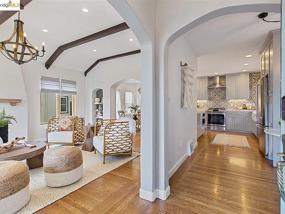 Welcome to Casa Idora, an elegant restoration of this Spanish Mediterannean home in the heart of Oakland's beloved Idora Park neighborhood. Classic 1931 details like the wrought iron entry chandelier, the vaulted & beamed ceiling in the living room, and the turreted tile roof, offer historical context, while decorative tile and modern touches throughout mix in the contemporary flair. The split level layout leads upstairs to the luxurious Primary Suite, and 2 additional bedrooms with a hall bathroom. The lower level offers a spacious bonus room that connects to the yard, convenient interior access to the garage, and access to the large basement with storage & workshop. Step out onto the large rear patio and sprawling lawn beyond and take in the all-day sunshine!