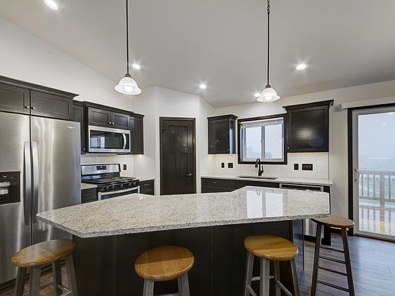 Call or Text Listing Agent - Kade Welfl - The Real Estate Center of Spearfish - 605-210-0010 for more information. This 5 bed, 3 bath home is located within walking distance of the Douglas Middle School and High School. The home is in excellent condition and ready for a large or small family to make it their own. The exterior has a large backyard that is 3/4 fenced with a beautiful deck that is accessible from the dining area to the lawn. The main level boasts granite tops, luxury vinyl flooring throughout and a beautiful primary suite with a tiled shower, his and her sinks and a large walk-in closet. The large pantry, natural gas range and brand new appliances are a few of accessories that make this an exceptional kitchen. The lower level is where you'll find the oversized second family room, additional 3 bedrooms and the 3rd full bathroom. The lower level is flooded with natural light, giving it a cozy yet warm and comfortable feeling. Buyer is responsible for verifying all information on this MLS document.