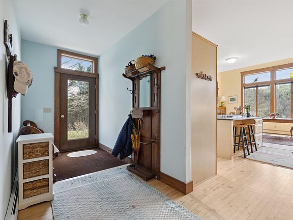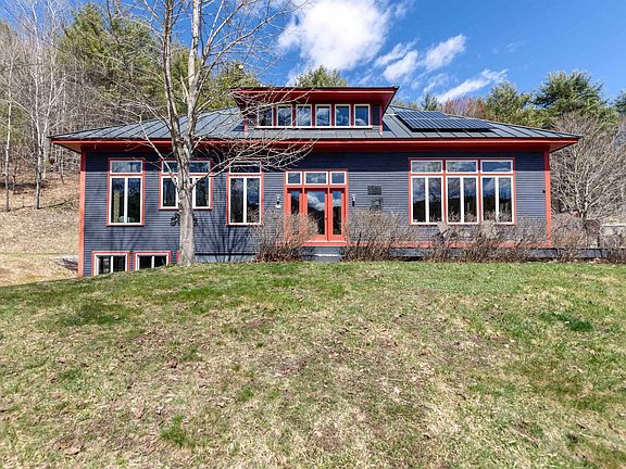 This stunning prairie style contemporary home is nestled on 28+/- acres with beautiful valley views.  Sunlit spacious rooms offer 9' ceilings accented by sweeping vaulted heights and  open floor plan.  A well appointed kitchen with a large island, sun filled dining area, gracious living room, along with hardwood floors combine to create a warm and genteel environment. First floor layout also includes a primary bedroom en-suite, large office/guest room, and a separate  laundry/pantry. .Second floor includes 2 large bedrooms with vaulted ceilings and a spacious loft-studio.  Large wrap-around deck great for summer entertaining or watching the stars at night.  Many heat choices: FHW oil or wood furnace along with a gas wood stove, mini split, and solar panels to offset your electric bills. Big open basement for endless fun along with a workshop. Current owners have a DIY pickleball court!  Detached 2 car garage.  Home of the top rated Sharon Academy and school choice for middle school and high school.  Sellers would prefer to close around September.