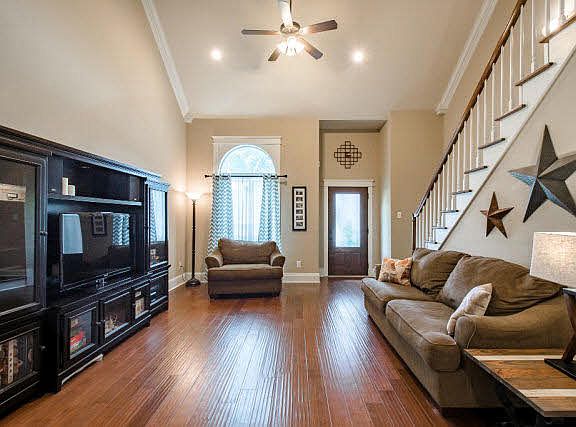 Absolutely beautiful Craftsman-style home showcasing 4 spacious bedrooms with Walk-In Closets, Extra-High Vaulted Ceiling & all your favorite modern features! Step into Living Room complete with heavy Crown Molding & Ceiling Fan, and open to long Breakfast Area with plenty of room to seat many guests during get-togethers. You will love Breakfast Area's Picture Frame Molding & Deep Window Molding throughout, as well as sparkling Hardwood Floors in living areas & all bedrooms. Kitchen offers SS Appliances to convey, Granite Counters & Tile Backsplash. In Master Suite, find extra sitting space, multiple windows, crown molding & Private Exit onto Open Back Patio. Plus Master Bathroom has Dual Vanity Sinks, Granite Counters, Garden Tub & Separate Shower. Other WOW factors are: SEER 13, Window Treatments to convey, BONUS ROOM with Closet that could be 5th BR, Storage Building, Full Privacy Fence & Mature Oaks. Plus you can enjoy North Station subdivision's picnic-perfect Common Area!!