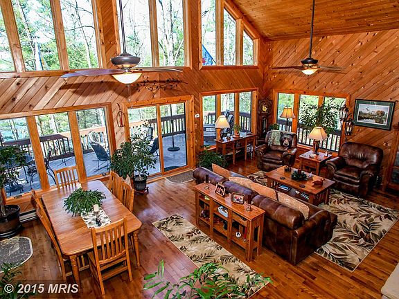 One of Deep Creek Lake's finest deep water lots has great views gentle slope to large dock w/ water slide, jet ski docking. Gazebo and kayak/canoe rack as well. Western cedar inside and out for a warm lake feeling. Open floor plan with main level kitchen, den and great room. 1st floor laundry. Two garages for all our storage. Finished level above main garage w/ two bedrooms Septic approved for 3