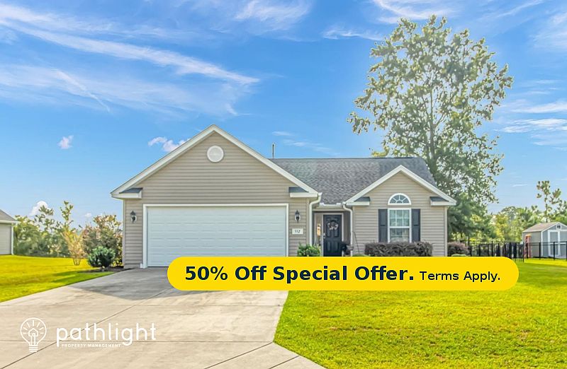 Application fee is $20 per household for a limited time! Welcome to your dream home in the desirable River Oaks Cottages! This beautifully maintained 3-bedroom, 2 -bathroom residence offers a perfect blend of comfort and style. Step inside to find a spacious living room featuring vaulted ceilings that create an airy atmosphere, perfect for relaxation or entertaining. The kitchen is equipped with sleek black appliances and opens to a cozy dining area, making meal preparation and gatherings a delight. Enjoy the convenience of a 2-car garage, providing ample storage and easy access. The thoughtfully designed layout includes plush carpeting in the bedrooms for a warm touch, while luxury vinyl flooring throughout the common areas ensures easy maintenance and durability. Step outside to your fully fenced-in backyard, offering a private oasis for outdoor activities, gardening, or simply unwinding after a long day. Located just steps from the stunning River Oaks Golf Course, this home is perfect for golf enthusiasts and those who appreciate the beauty of Myrtle Beach. With shopping , dining, and beautiful beaches nearby, you'll have everything you need right at your fingertips. Don't miss your chance to own this lovely home in River Oaks Cottages. Schedule a showing today! Professionally managed by Pathlight Property Management, the exclusive property manager for Home Partners of America, offering excellent customer service, 24/7 emergency maintenance service, online application and payments, and pet-friendly options. HOA occupancy restrictions may apply. The listing agent offers competitive rental co-broke commissions depending on the standard in the metropolitan area. Once notified of approval you will be required to submit a security deposit equal to one month's rent within 48 business hours to secure the home. Please reach out to the agent to view the home before applying or use our self-touring option if available. To make managing utilities seamless, electricity, gas, sewer, trash, and water are maintained in the resident's name. Some restrictions may apply, as certain providers may not allow residents to transfer specific utilities into their name. To better serve our residents, Pathlight is pet-friendly with no breed restrictions. The lease agreement outlines applicable pet fees. In most states, there is a one-time $300 non-refundable pet deposit and $30 monthly pet rent. Service and assistance animals are exempt from any restrictions or pet fees with proper documentation. If your home has a pool, there is a $100 monthly pool fee. To ensure the best care for your HVAC system and, in turn, the air quality in your home, Pathlight offers an optional $15 fee for bi-monthly filter service. Broker participation welcome, so please contact your leasing agent for more information. For additional information on our application process and lease fees, please visit our online help center. Advertised rental prices and promotions are subject to change at any time. The information contained herein has been obtained through sources deemed reliable but cannot be guaranteed as to its accuracy. Any information of special interest should be verified with Pathlight Property Management. **ALERT: If you see an ad for this home on Craigslist or Facebook Marketplace, please notify the listing agent. We do not advertise any of our homes on Craigslist or Facebook Marketplace and it is likely fraud.**