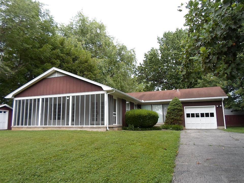 Spacious 2 bedroom 1.5 bath home with privacy located in the city limits of Etown. Living room w/ fireplace, screened in porch, brick courtyard, city schools and all city conveniences. 1.5 car garage. Move-in condition.