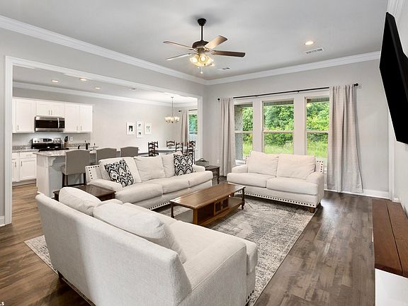 Welcome to Twin Beech Estates. This Gold Fortified, Rodessa Plan has 4 bedrooms and 2 bathrooms. Upon entering the foyer you are greeted with natural light from the bank of windows along the back of the home. The living room has tall ceilings with crown molding and recessed lighting. The upgraded vinyl plank flooring continues throughout the home into the kitchen which has a large island, beautiful cabinets, walk in pantry and granite countertops. The split floor plan has a spacious primary bedroom on one side along with the primary bathroom including double vanity, garden tub, seperate shower, and private water closet. Across the home you will find three bedrooms with their shared bathroom also with a double vanity. The covered back porch overlooks the private yard that aligns with common space of the neighborhood. Schedule your tour today!