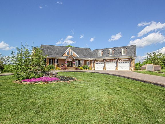 CUSTOM HOME ON 5.25 ACRES! This very impressive house spares no expense when it comes to quality craftsmanship. You'll really appreciate the woodwork throughout. The vaulted ceiling great room is very spacious and is ample to formal dining and a gourmet kitchen w/ large island, 6 burner gas stove-top, cathedral ceiling breakfast room, stainless farmhouse sink, granite counter tops, custom built-in refrigerator & prep sink. Laundry room features a large folding counter w/ sink & laundry shoot. The amazingly designed master suite has cathedral ceilings, wood burning FP, HUGE walk-in closet & strategically designed en-suite that will blow your mind! Office/den w/ gorgeous stone details is also on the main level. Upstairs are 2 unique bedrooms (one is an en-suite) w/ balconies. Cozy sitting area overlooks the great room, MASSIVE bonus room & 4th bedroom are also on the 2nd floor. The finished basement is the perfect retreat; boasting a wet bar w/ granite, gorgeous stained concrete floors, reclaimed barn wood walls, tin roof ceiling & a very unique bathroom w/ walk-in tiled shower & antique flusher. The rest of the basement is great for an exercise room & the largest part is currently being used as a workshop. Outside is a fenced yard & lovely water feature that borders the patio. This home is a MUST-SEE to believe! Call us today for more details.