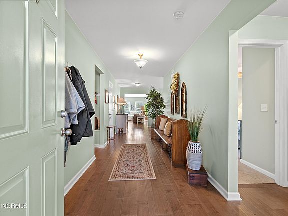 Step into this amazing three bedroom, two and a half bathroom home tucked away on a peaceful cul-de-sac with waterfront views. Walk into the spacious foyer with beautiful lvp flooring that sets the tone for the whole house. To the right, find two cozy guest bedrooms with plenty of space and a full bathroom in between for convenience. On the left, there's a hallway that leads to the laundry room and garage entrance, making chores a breeze. Straight ahead from the foyer, you'll discover a formal dining room on your right that offers a stunning water view - perfect for hosting dinners with a scenic backdrop. Just past the dining area, the family room awaits, boasting high ceilings and a warm, welcoming atmosphere. The kitchen, with stainless steel appliances granite countertops, tile backsplash, a large pantry, and a work island, is a true chef's dream. There's also a cozy breakfast nook and a flex space for your morning coffee or evening relaxation. In the primary bedroom, enjoy ample space, a walk-in closet with electricity, and a large bathroom with a walk-in shower and double sinks. Outside, there are two concrete sitting areas where you can soak in the beautiful waterfront scenery and lush landscaping that helps with privacy. This meticulously maintained home is a must-see! Reach out to your agent or the listing agent today to schedule a tour.