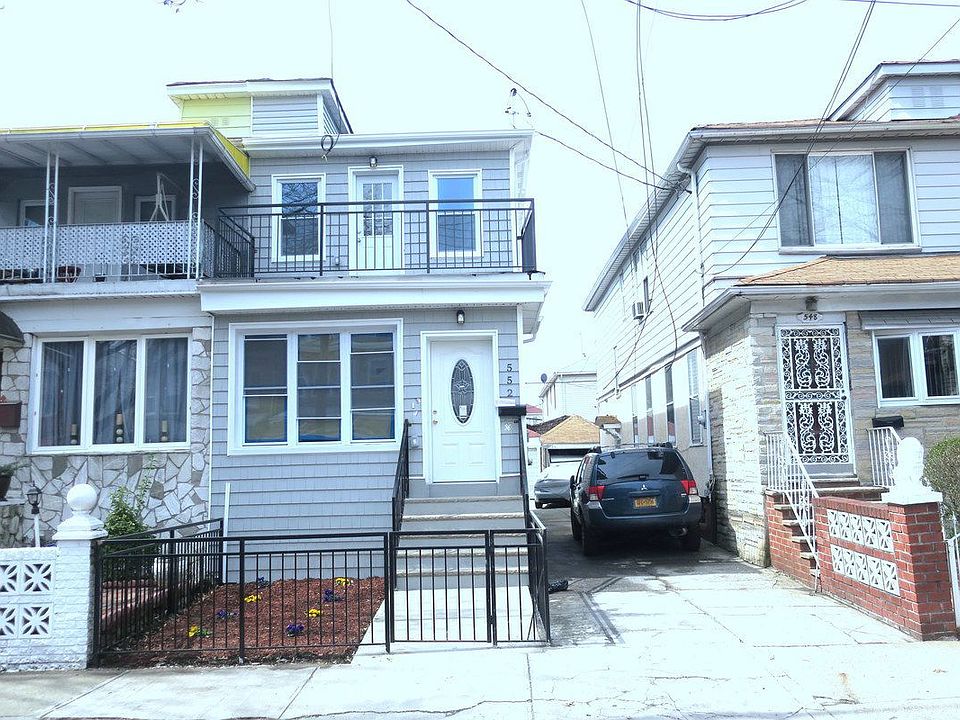 Up for sale is a beautiful gut renovated semi-attached 2 family home on a quiet block in heart of East Flatbush, with shared driveway and garage. Top Floor - 2 bedrooms 1 full bathroom with a walkout balcony over a specious 2 bedroom 1 full bath that leads to a washer/dryer hook up in the common area over a finished 1 bedroom basement with a full bath and kitchenette ready to rent out.