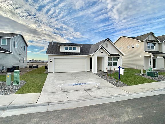 LOT:LE56 - New construction 1900 SQFT modern farmhouse single level home. 3 bedroom 2 bath with luxurious primary suite with freestanding soaking tub, shower and walk-in closet. Deluxe chef's kitchen with quartz counters, walk-in pantry, island, dishwasher and 5 burner stainless steel built-in gas range. The Charity in the desirable Legacy neighborhood in Hermiston OR. Built by award winning builder MonteVista Homes. Great room, 95% high efficiency gas forced air heating, air conditioning, gas fireplace and covered patio.