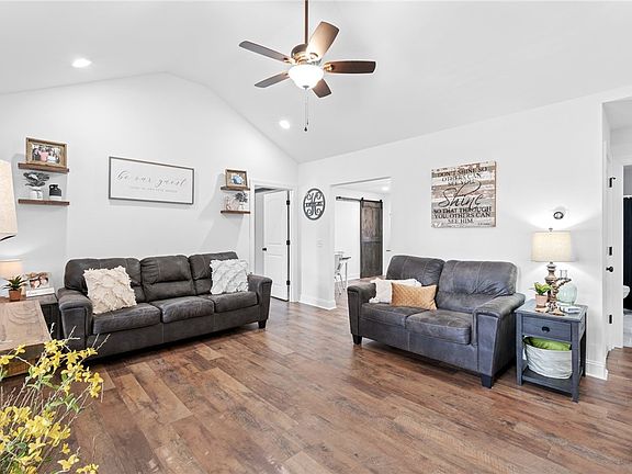 Welcome to 552 Edens Road! This pristine one-level residence has seamlessly blended farmhouse luxury with convenience and craftsmanship. Newly constructed and completed in 2021, the property boasts three bedrooms, two baths, and thoughtfully designed spaces throughout the home, which is a testament to the meticulous care and attention to detail the sellers have given to this property during their ownership. Walk through the door and immediately notice the cathedral ceiling that hovers over the spacious living room that is flooded with natural light. This inviting ambiance extends throughout the entire home and follows you as you enter the eat-in kitchen. The owners have added sliding drawers within the cabinets and soft close hinges on all the doors. The island is spacious, the granite countertops are abundant, and the kitchen is not just a functional space but a stylish focal point for daily gatherings. The walk-in laundry room has been upgraded with cabinets, a countertop, and a sliding barn door entry, which provide both practicality and an aesthetic appeal. Discover the comfort of the oversized master suite, complete with double vanity sinks, shower insert, tile flooring in the bathroom, additional cabinetry for storage, and a walk-in closet adorned with a recently added barn door to continue the aesthetic design throughout the house. Follow the luxury vinyl plank flooring to the other side of the home where two spacious guest bedrooms and a large guest bathroom can be found. Step onto the oversized back deck, perfect for entertaining or enjoying the tranquility of the .59 acre lot. The massive side yard offers endless possibilities for outdoor activities and the extra pad for parking adds convenience for all of your guests. The sellers have gone the extra mile by performing a pre-inspection and addressing the majority of repairs. Add this along with all of the kitchen and laundry appliances conveying at closing, and this saves the buyer money and worry in the home buying process! Having a gas tankless water heater also provides comfort with knowing you never have to worry about running out of hot water. Location is key as well. Tucked away on a quiet area within the city limits, this home offers the perfect blend of privacy and accessibility. Enjoy the proximity to shopping, restaurants, and groceries, making daily life convenient and enjoyable. Don't miss the opportunity to make this meticulously maintained and upgraded home your own. Schedule your showing today and experience the comfort and style of 552 Edens Road!